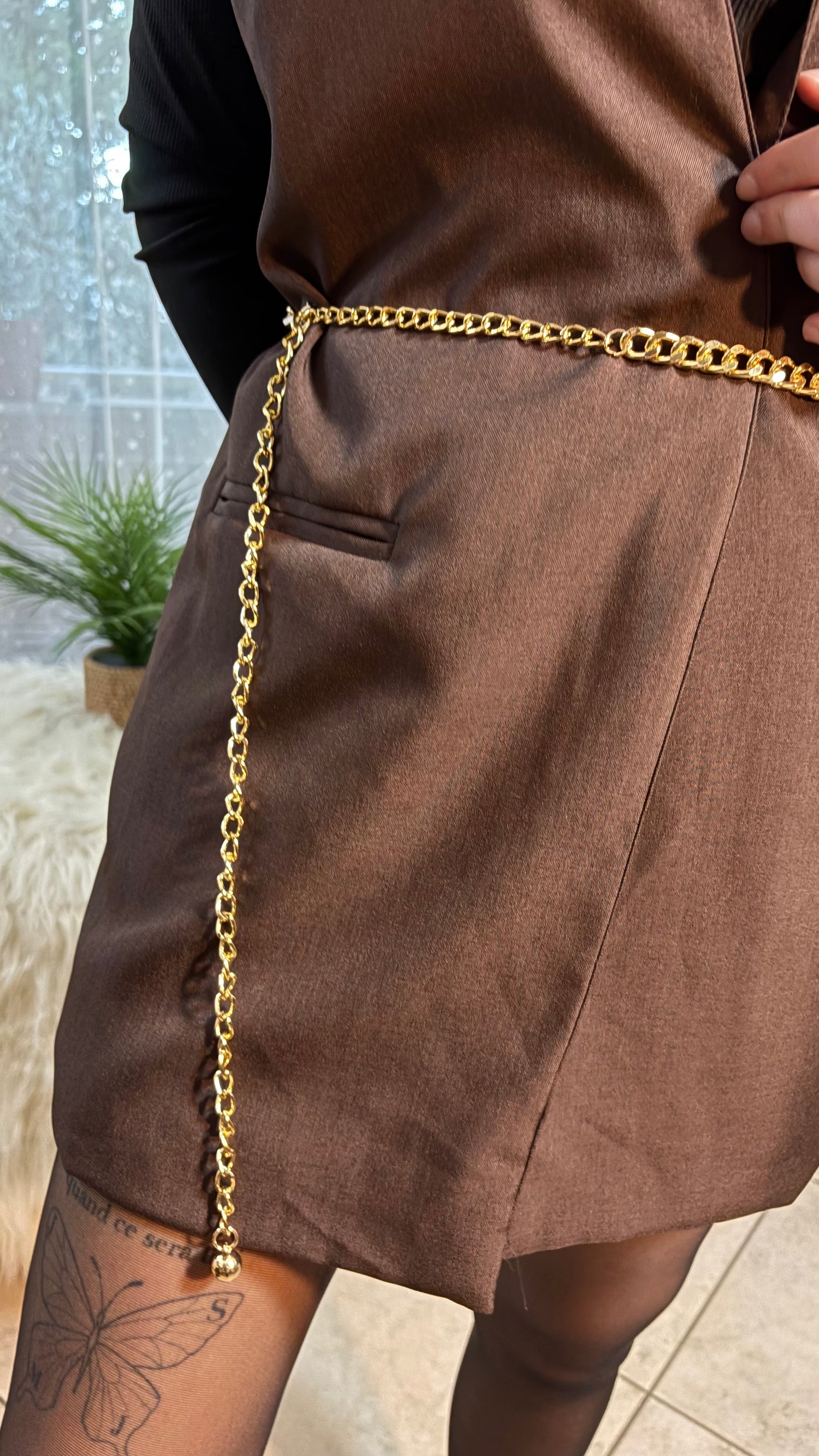 Cette ceinture chaine dorée apporte une touche glamour et raffinée à toutes vos tenues. Parfaite pour sublimer robes, pantalons ou jeans. ✨
